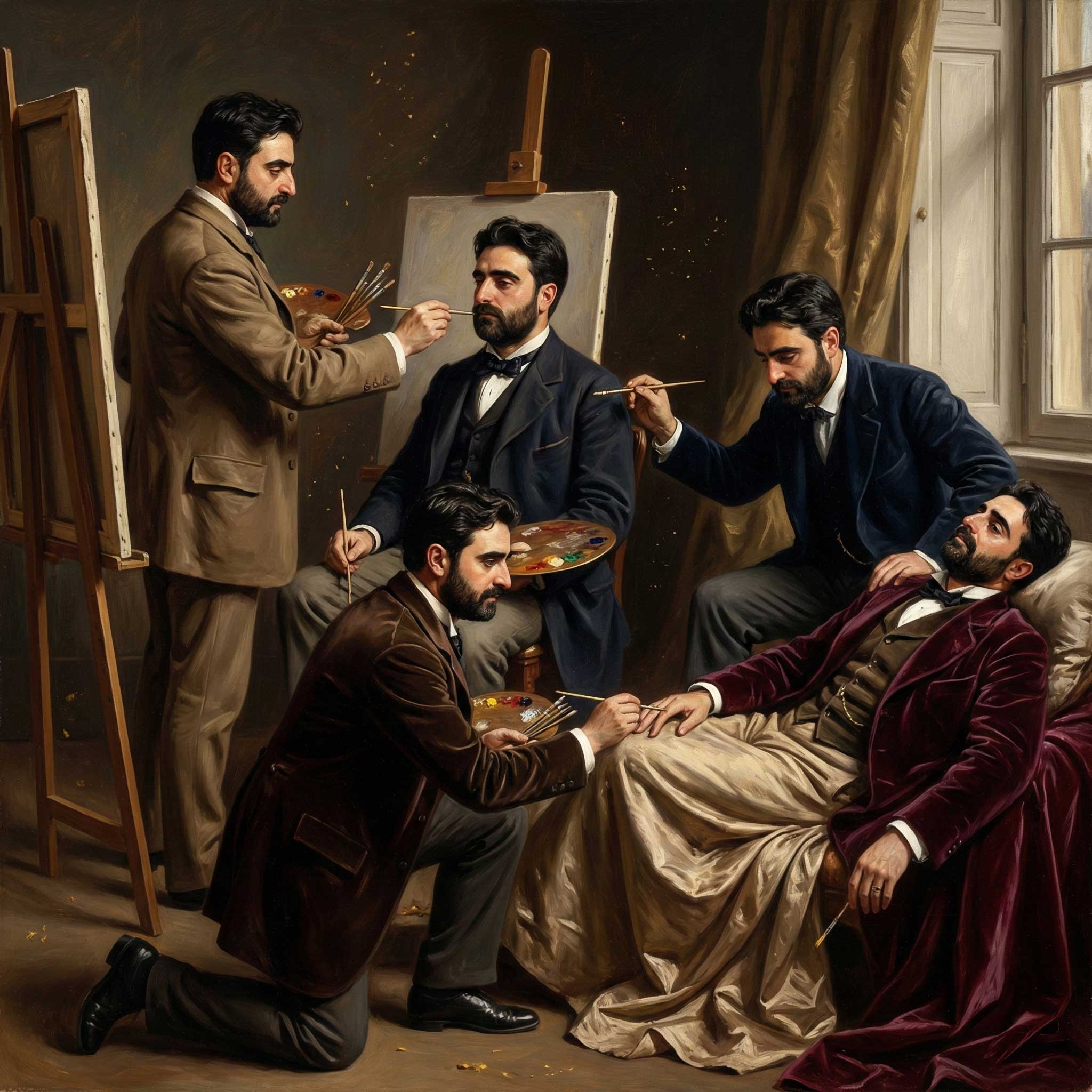 Cinque versioni dello stesso uomo, ognuna con un nome e un colore diverso, si ritrovano in uno studio a dipingere, posare, osservare e sognare. Attraverso i loro ruoli e i loro silenzi emerge una domanda sola, antica e urgente: chi siamo davvero quando ci guardiamo con onestà?